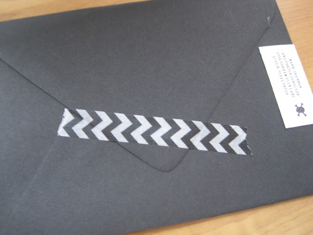 This year, I designed a Halloween invitation set with two vellum clear sheets of paper; the invitation details printed on the top layer. Sandwiched in between the two vellum sheets were floating black and white bats and witches confetti. The black envelope added to the "Spooktacular" look I was going for. I finished the envelope with custom cardstock address labels and chevron tape. I can't wait for this year's party. It's going to be full of surprises!